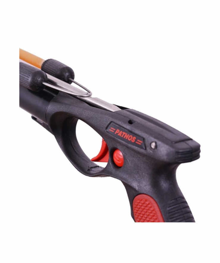 Λαβή D'Angelo I χαμηλού προφίλ με μηχανισμό ανάστροφης σκανδάλης που προσθέτει επιπλέον μήκος οπλισμού 7 cm και λαμπερά κόκκινα ελαστικά πλευρικά πιασίματα