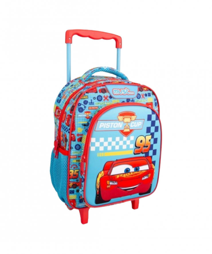 Η Σχολική Τσάντα Τρόλεϊ Νηπίου Disney Cars Piston Cup Must με 2 θήκες ξεχωρίζει για το υπέροχο μαλακό 3D σχέδιο Mcqueen που θα ενθουσιάσει